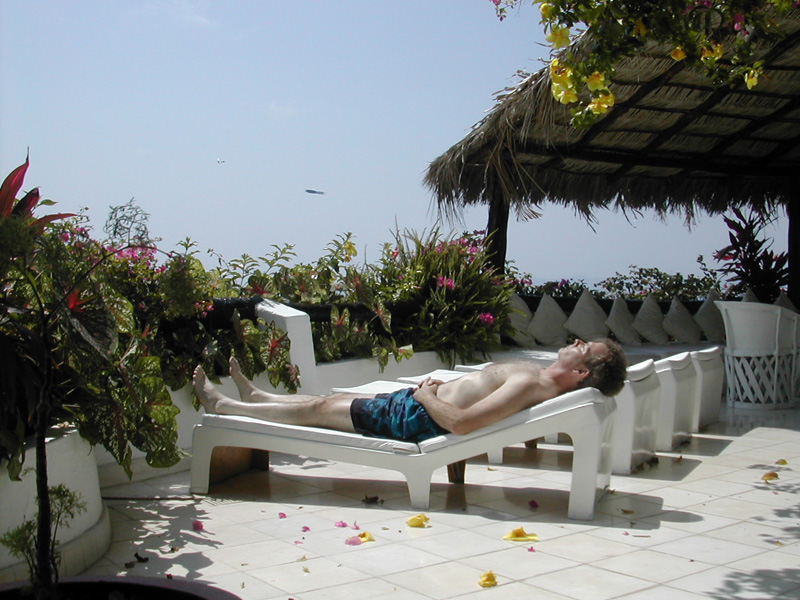 If you're in the mood for a little sun, the sun deck has four nice chaise lounges. Notice all the flowers on the floor? They're constantly falling from above. The maids come twice per day, and one of their main jobs is sweeping up flowers!