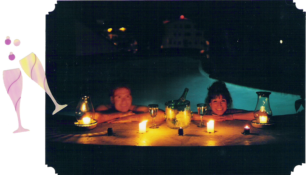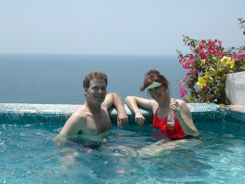 We spent a lot of time enjoying our private pool, both during the day... Chris and Ann in our Ocho Cascadas pool