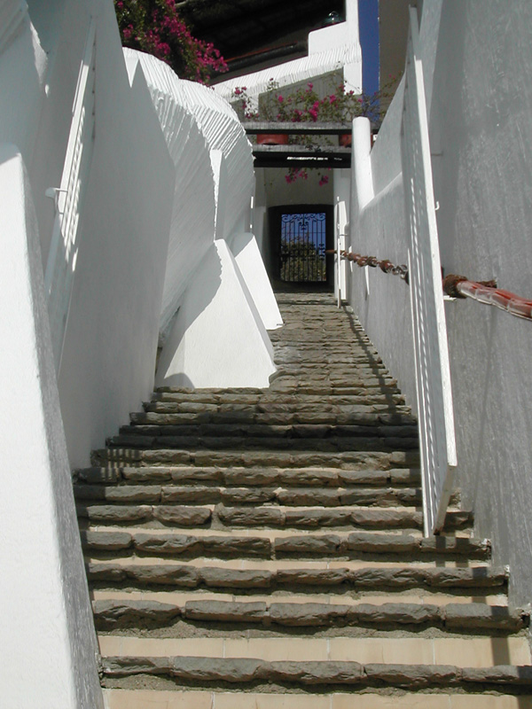 This is the view of the stairs heading up from Villa Six to the upper entrance. The Ocho Cascadas stairs are very steep, and each step is narrow & uneven. Since there is no elevator, the resort is not for everyone.