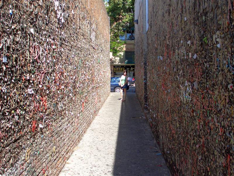 Bubblegum Alley is a rather unusual tourist attraction on Higuera Street downtown. Of course, Chris got gum stuck on the bottom of his shoe! | The Mission San Luis Obispo de Tolosa was the site of the street-painting festival that we came to see. |