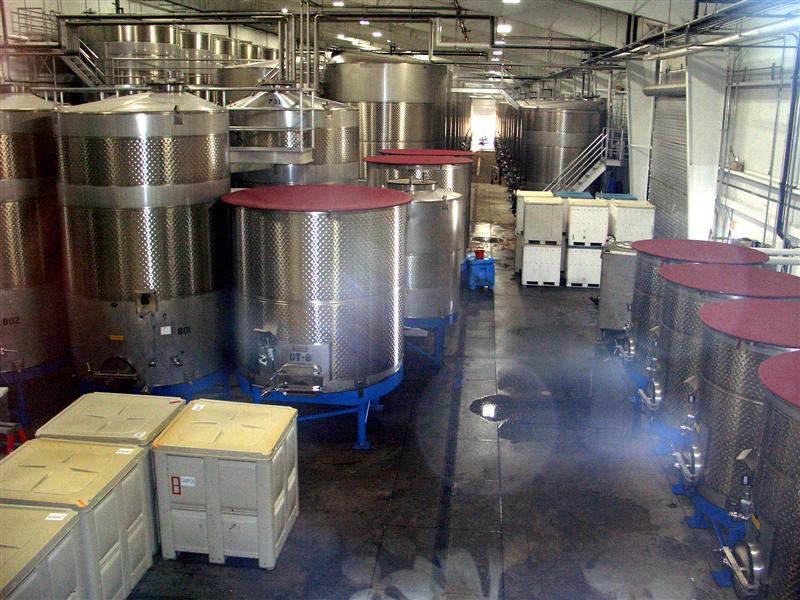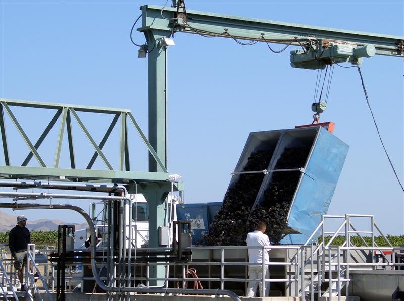 Next, the juice is pumped into the stainless steel fermentation tanks inside the winery. | If you got tired of watching the harvest activity, you could turn the other direction to admire the vineyards. |