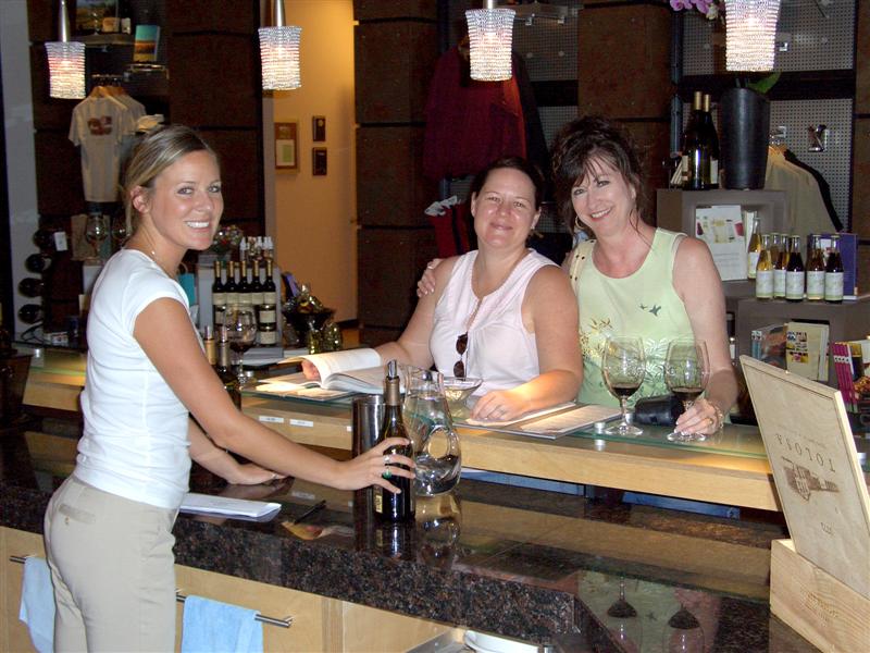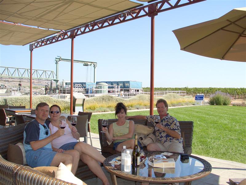 Tolosa Winery also had a nice tasting room, with a very modern decor. We bought a bottle of their Pinot Noir to have with our lunch. | We had another great picnic lunch on the Tolosa patio, which overlooked all the activity at the back of the winery. |